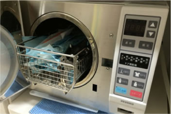 三次洗浄として使用する器具、ガーズ、綿等を高圧・高温(132℃)で、“完全滅菌”する機械です。